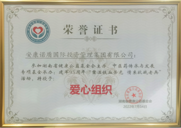 ▲安康諾盾集團(tuán)被評(píng)為“愛(ài)心組織”